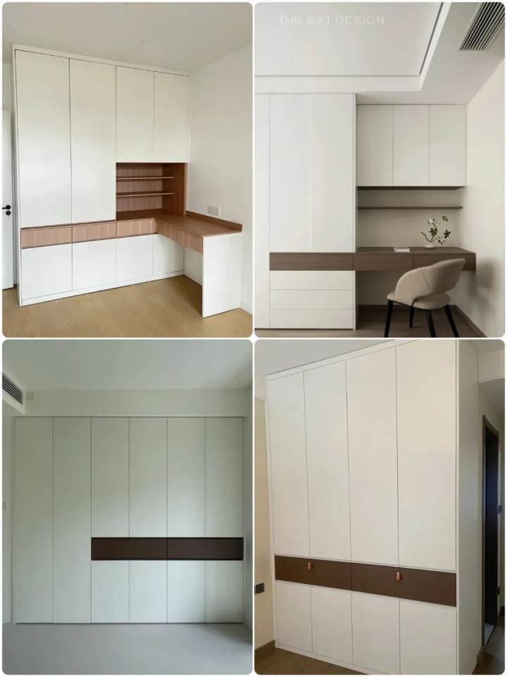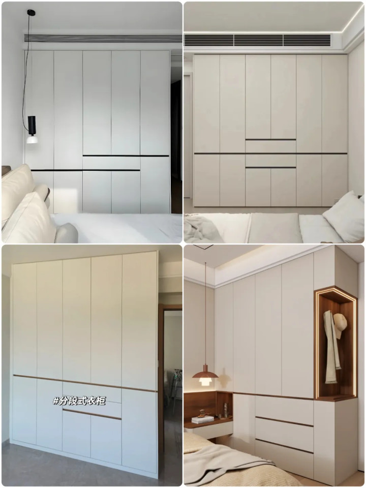 ▲衣柜分段式设计,而非一门到顶,节省成本;同时抬高抽屉有效解决弯腰问题,外置抽屉居中设计,外观别样好看。