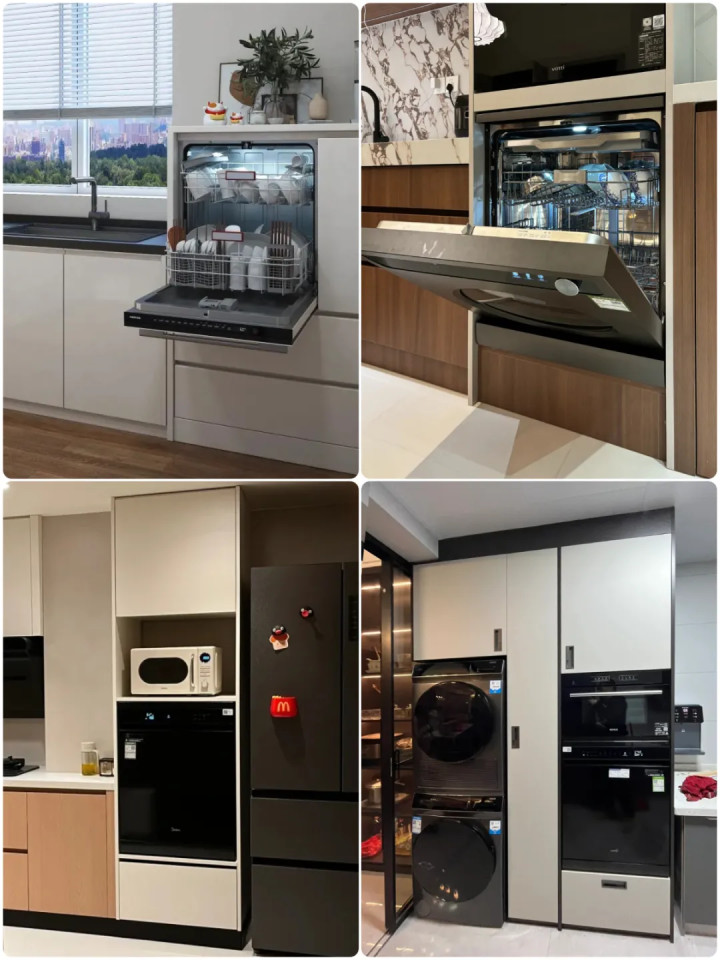 ▲将洗碗机抬高是明智之举,选择合适的高度,开门—放碗—关门—操作,完全可以站着完成,毫不费腰。同时,抬高的设计也使排水更加顺畅。洗衣机抬高