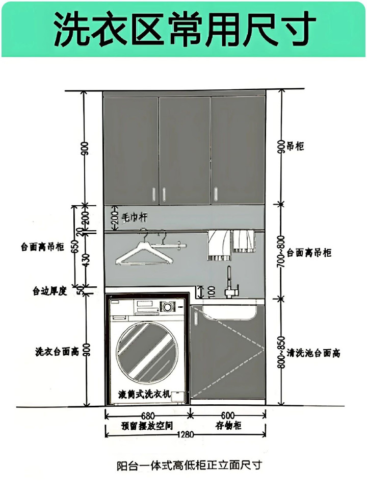 ▲洗衣机台面做高低台面,功能分区,空间利用,美观设计,人性化方面,上展现出多重优势。